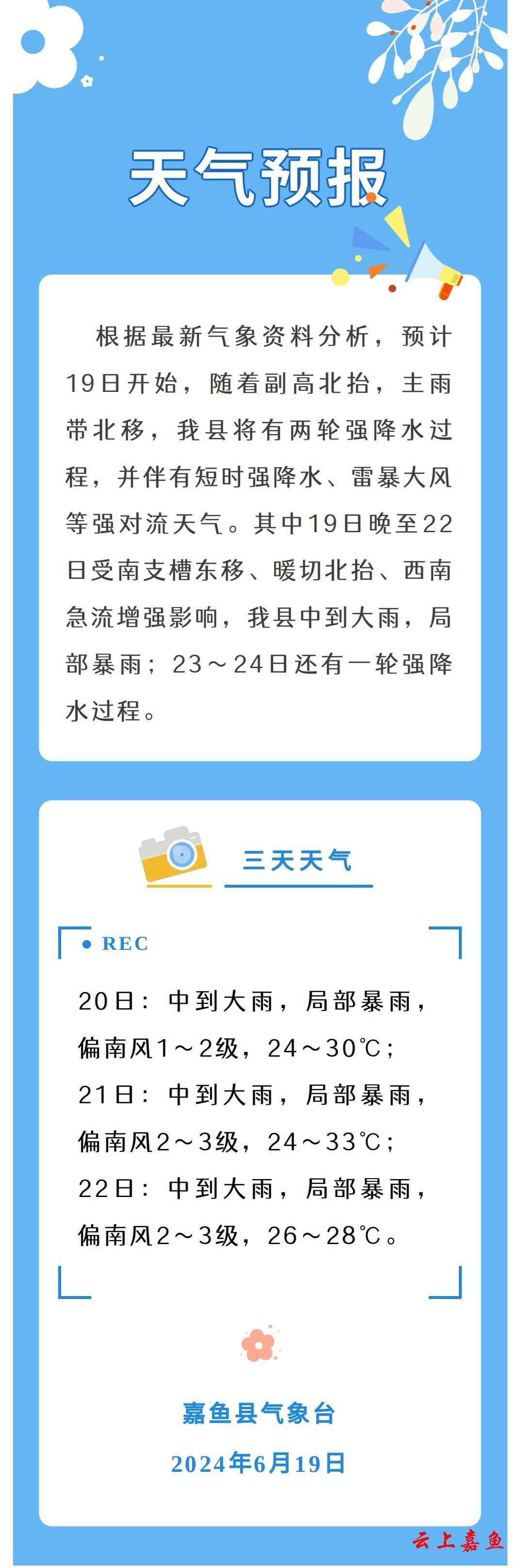 2024年6月19日嘉鱼天气预报