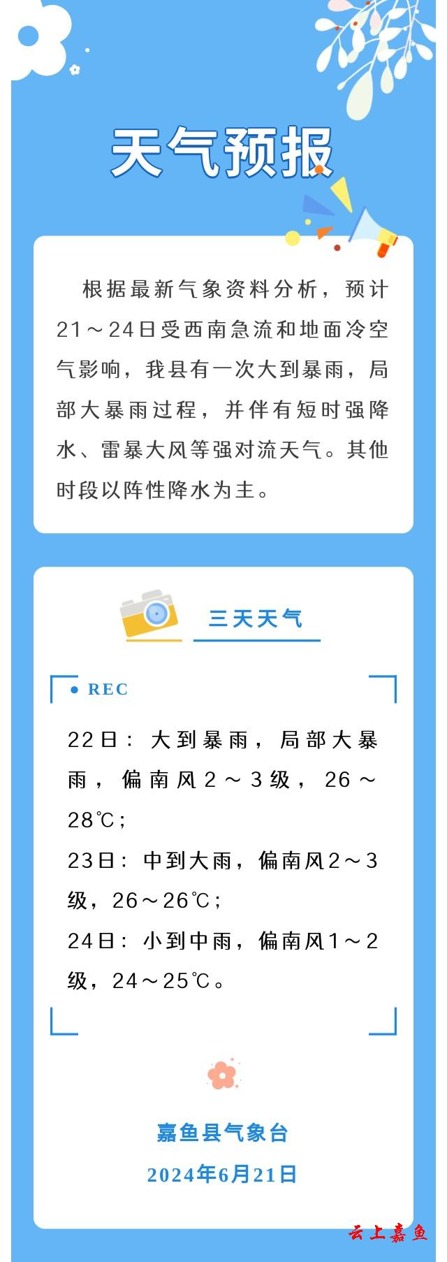 2024年6月21日嘉鱼天气预报