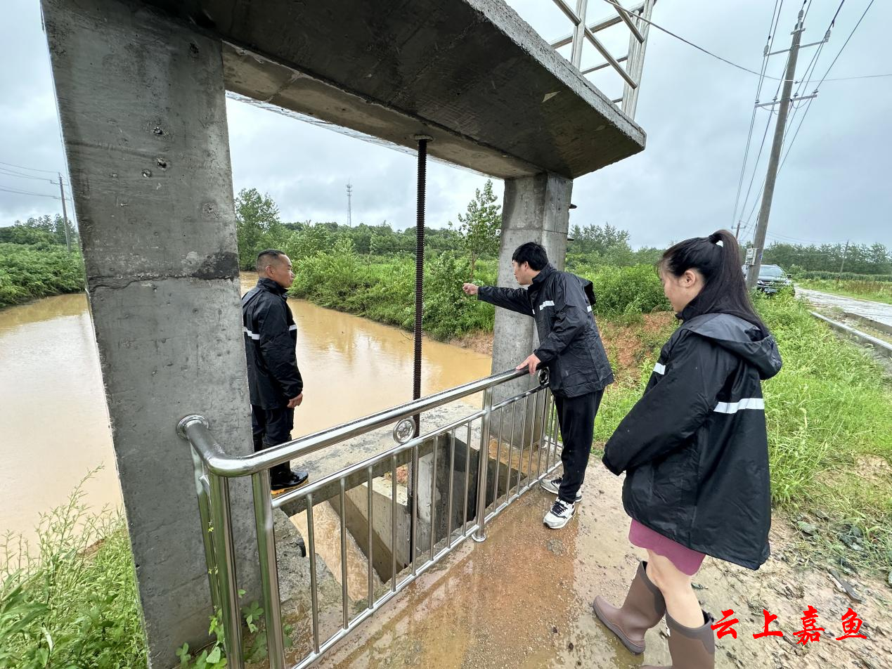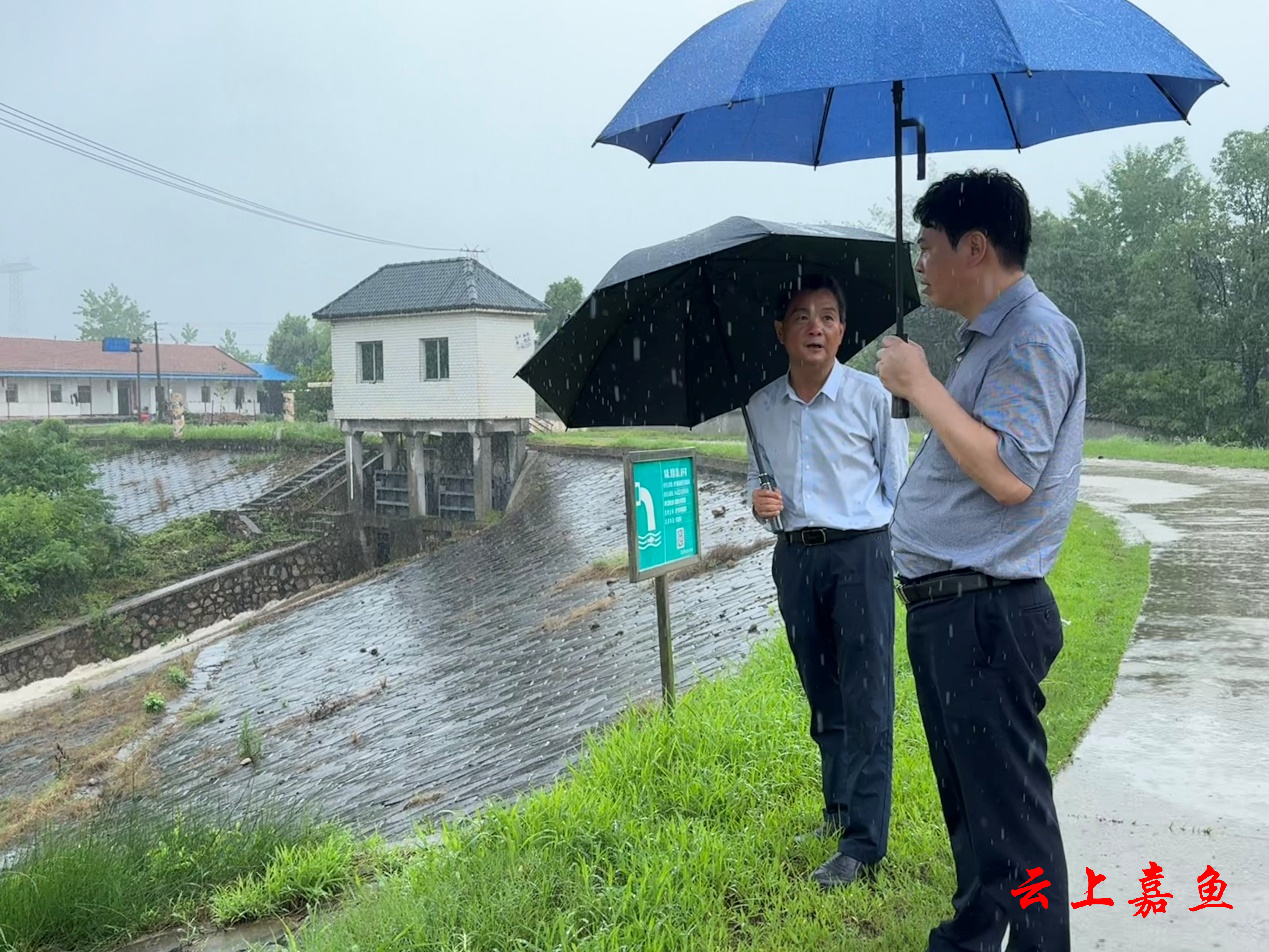 胡金云一行冒雨来到高铁岭镇陆水村、三乐泵站等地,实地检查泵站开机、值班人员到岗到位、溢洪道等设施的运行情况及各地防汛应急预案的落实情况。