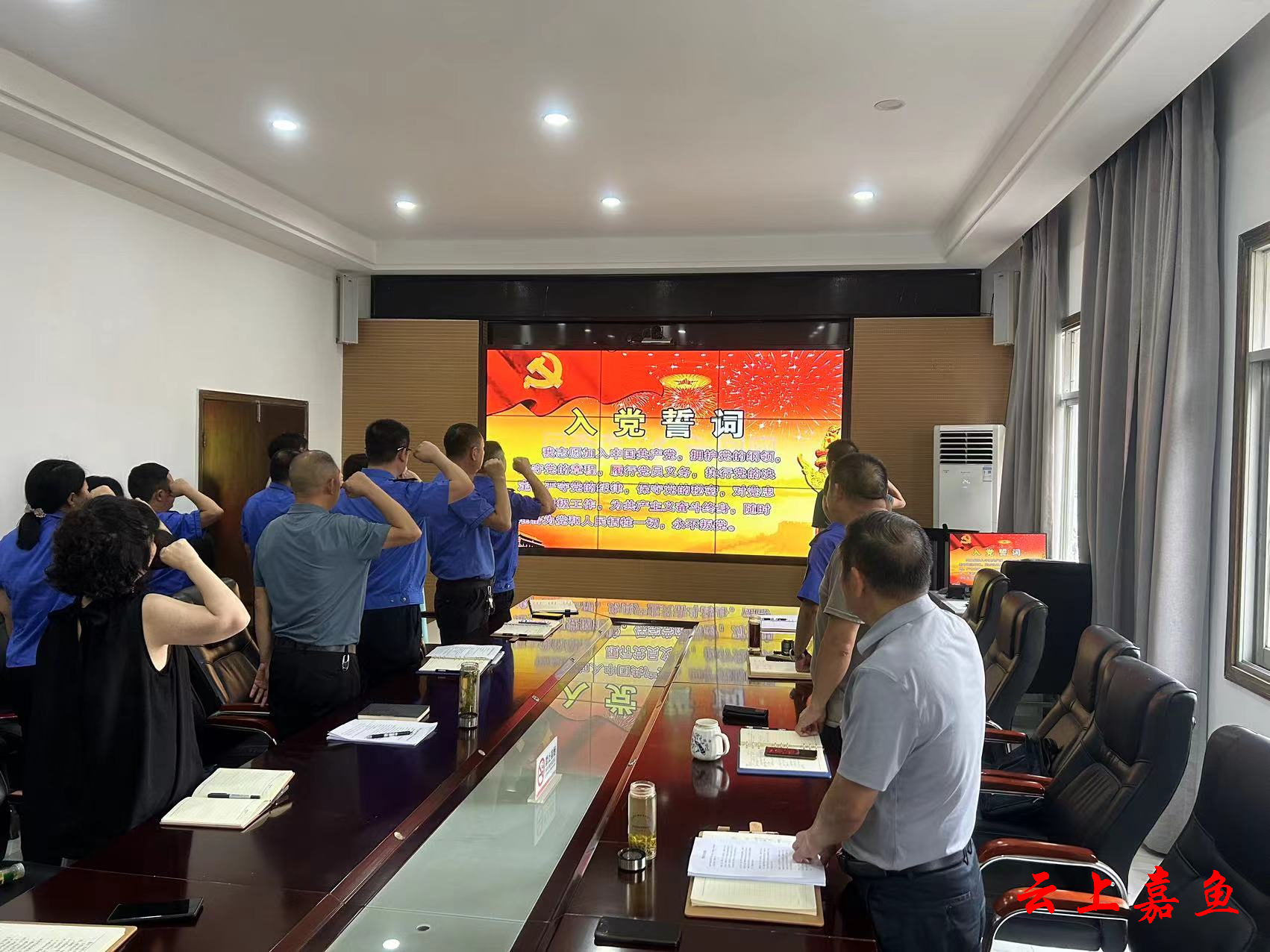 云上嘉鱼报道(通讯员熊文娟)“我志愿加入中国共产党,拥护党的纲领,遵守党的章程……”庄严浑厚的入党誓词在江堤边响起,身后是持续上涨的江水,脚下是百姓赖以生存的乐土,铿锵誓言中是党员们践行初心使命的承诺。
