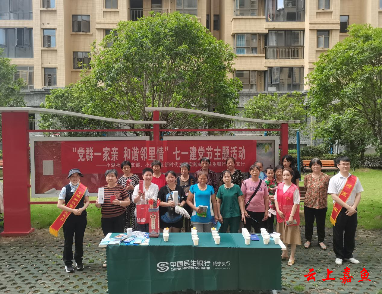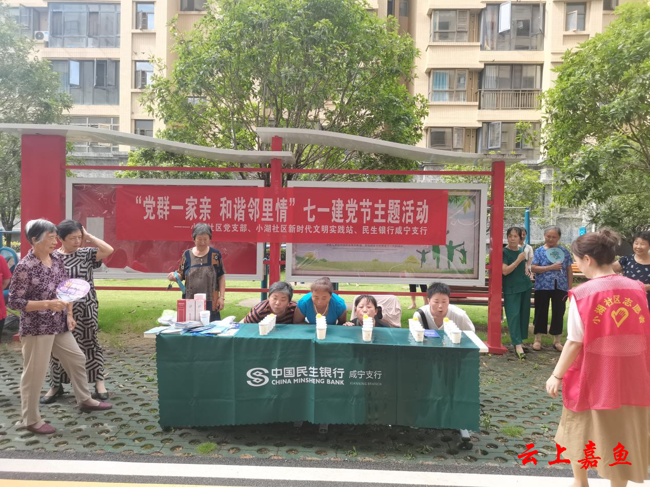 云上嘉鱼报道(通讯员周露黎)为庆祝中国共产党成立103周年,7月1日,鱼岳镇小湖社区党总支、小湖社区新时代文明实践站联合民生银行嘉鱼支行在九龙郡党群服务站开展“党群一家亲 和谐邻里情”七一建党节主题活动,旨在展示社区党群同心、共谋发展、和谐进取的良好氛围。