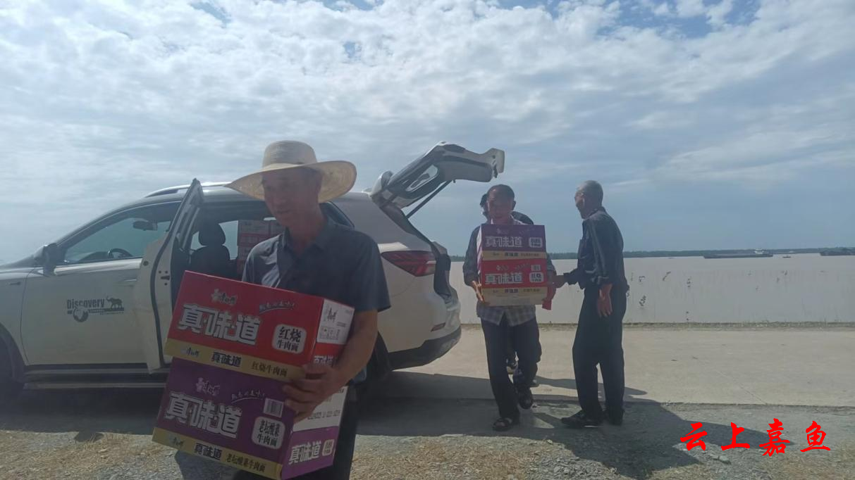云上嘉鱼报道(全媒体记者郭辉 通讯员熊郁 汤琴)自开展防汛工作以来,鱼岳镇南门湖村心系家乡的党员乡贤们纷纷来到护城堤哨所,带来一车又一车的防汛物资,感谢防汛一线人员的辛勤付出。