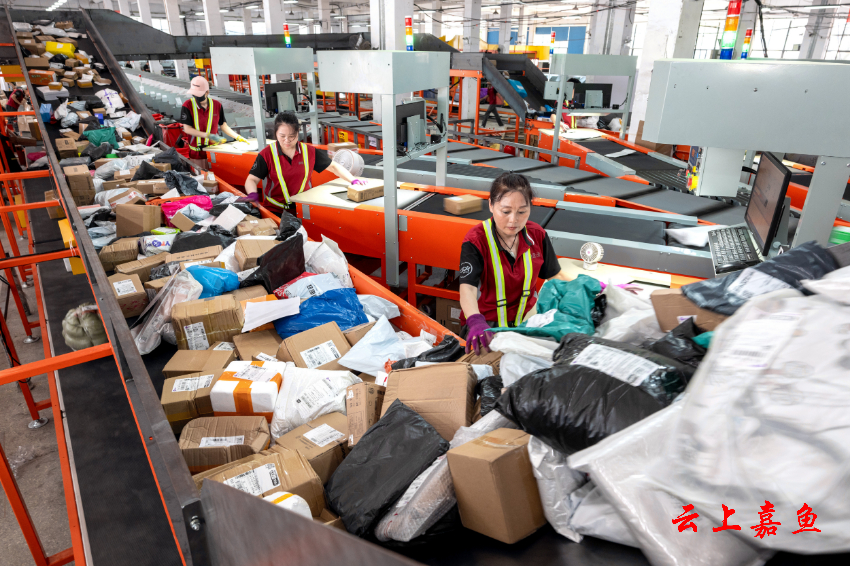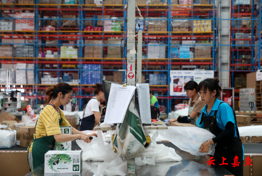 2024年6月18日,工作人员在贵州省龙里县一家物流仓库处理货物。 新华社发(袁福洪 摄)