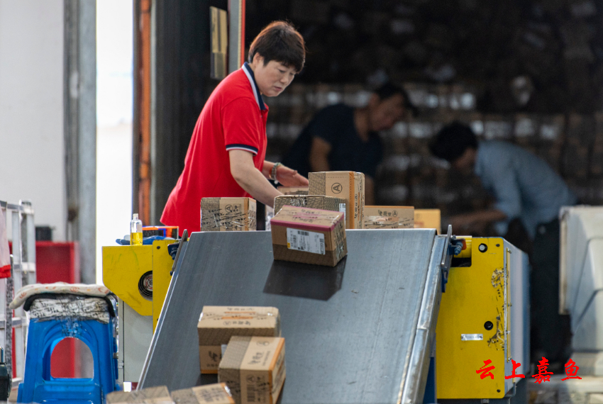 2024年6月18日,在浙江省湖州市长兴县星网电子商务创业园一家快递企业,工作人员忙着分拣、扫描出库等工作。 新华社发(谭云俸摄)