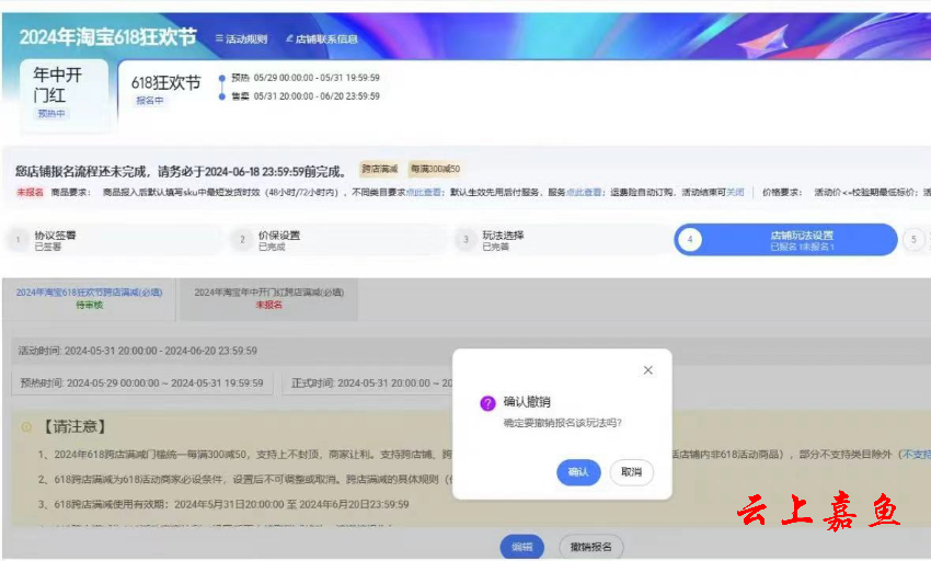 某商家向记者提供的后台截图显示,诸如满减、运费险均被设置为参与活动的必设条件,设置后不可调整或取消,唯有大促活动周期结束后方可关闭。