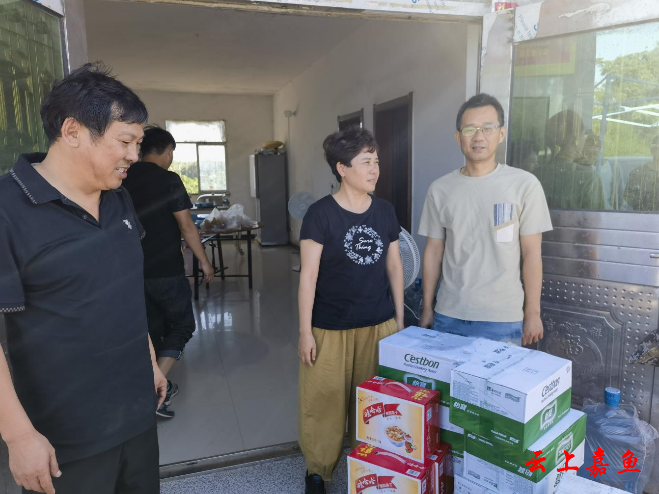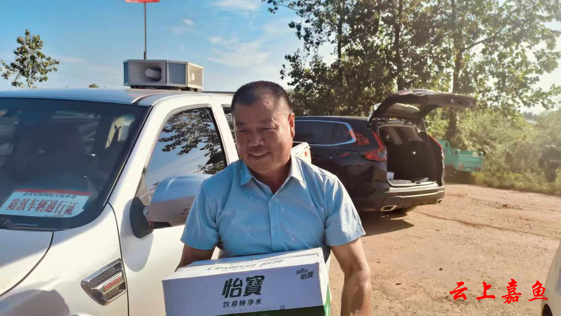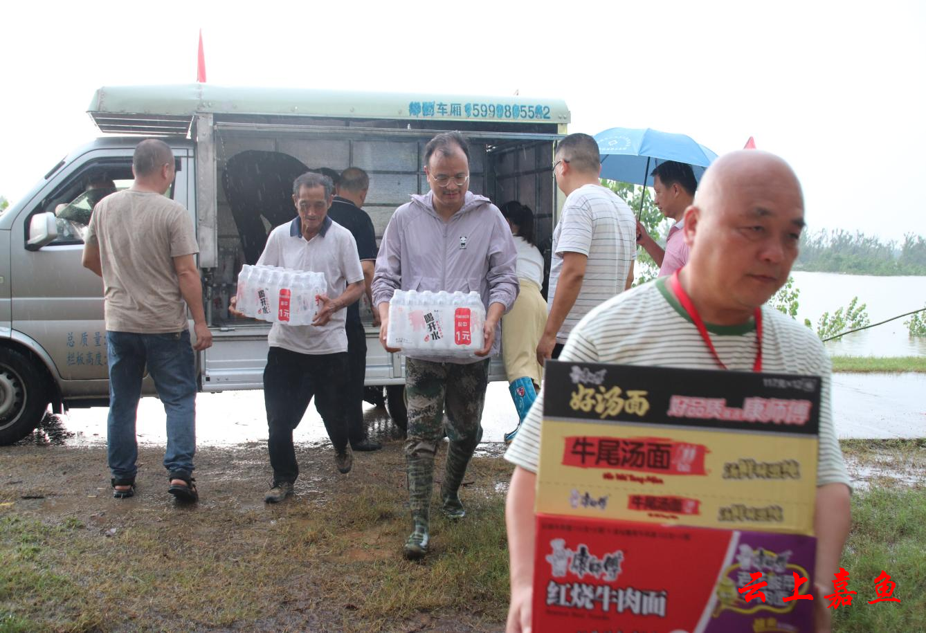 6月30日,陆溪镇陆口大酒店负责人尹爱涛带领志愿者到陆溪镇珍湖圩堤慰问一线防汛人员。