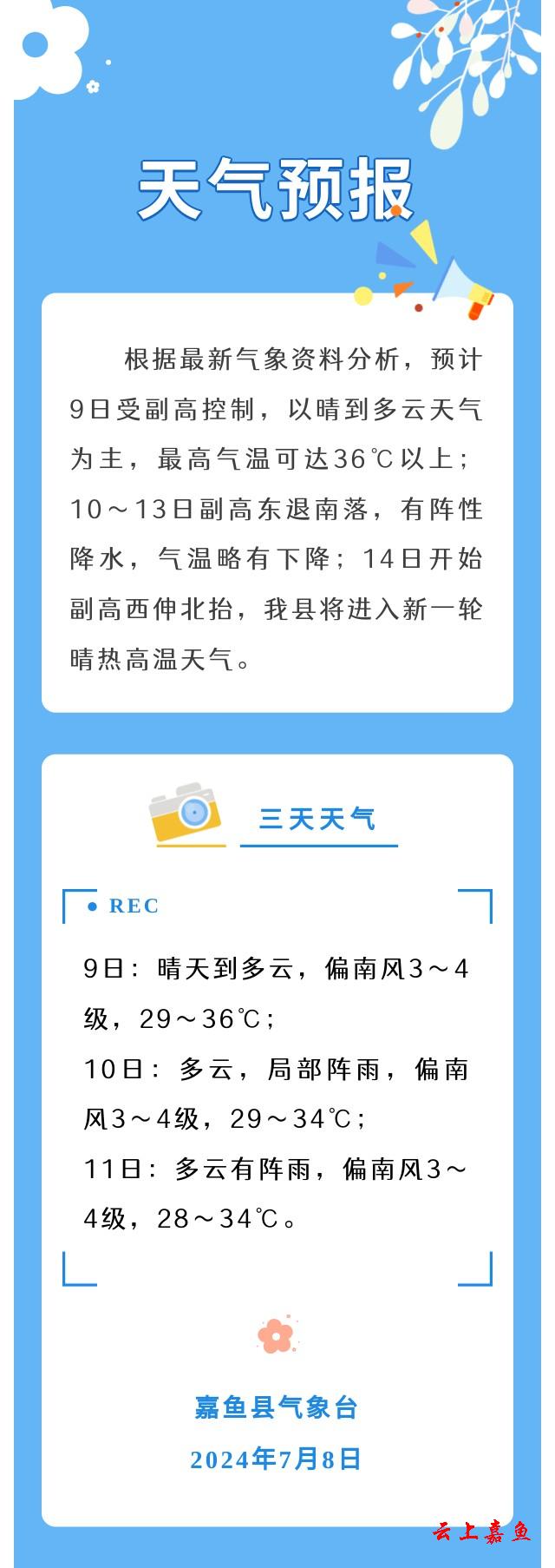 2024年7月8日嘉鱼天气预报
