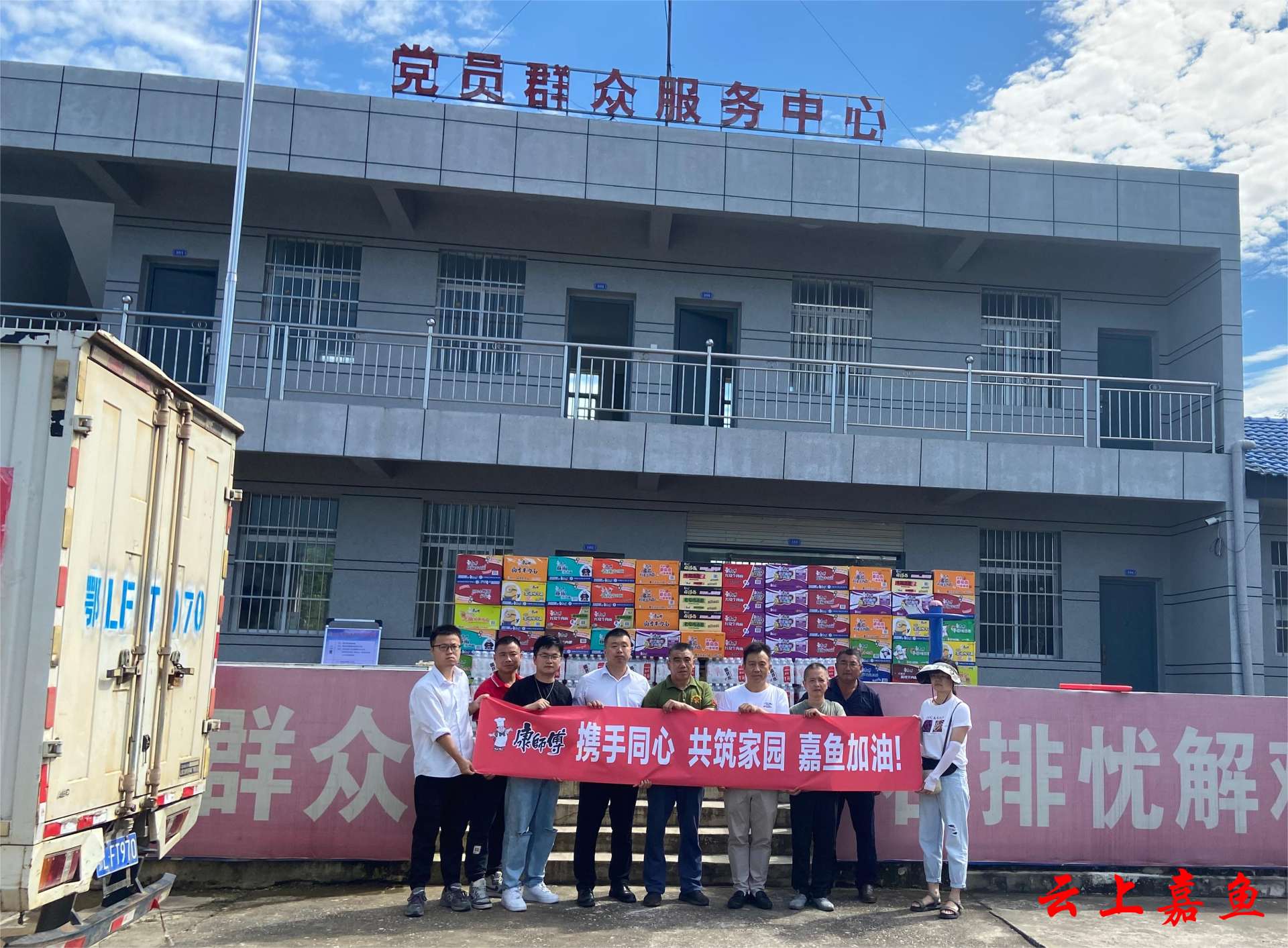 7月5日,嘉鱼开发区组织汉麻生物科技、嘉麟杰纺织、湖北嘉成新能源装备等13家爱心企业,为各镇防汛一线人员送去价值50余万元的矿泉水、方便面、毛巾、红茶等物资;7月6日,金盛兰冶金科技为高铁岭镇防汛一线人员送去矿泉水、方便面、八宝粥等物资;7月3日,湖北金润农业有限公司为潘家湾镇防汛一线送去矿泉水、泡面等物资;7月1日,联乐集团为防汛一线人员送去矿泉水、方便面、八宝粥等物资;7月1日,湖北鹏路信息科技有限公司(平台原名“车马动”)为防汛一线人员送去矿泉水、泡面、八宝粥、火腿肠、牛奶等物资。