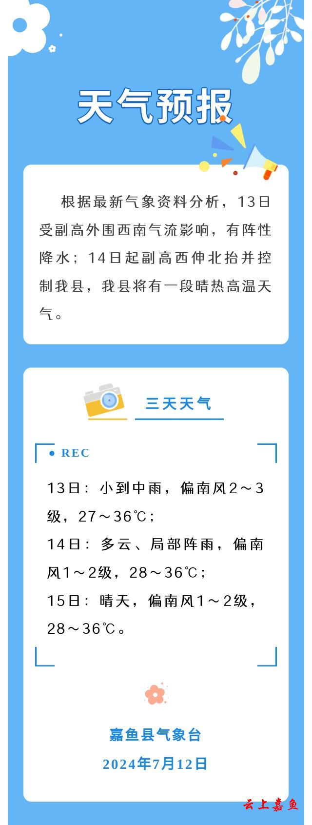 2024年7月12日嘉鱼天气预报