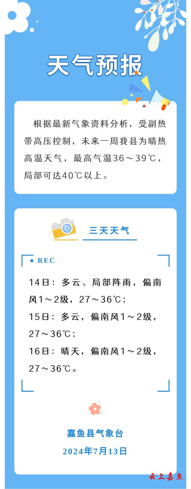 2024年7月13日嘉鱼天气预报