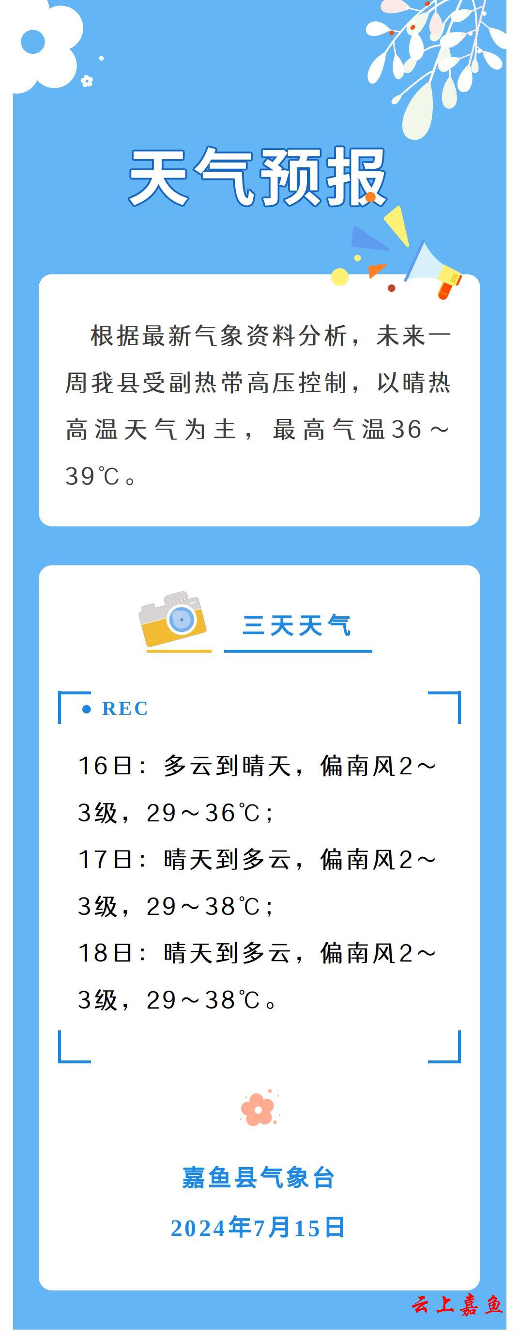 2024年7月15日嘉鱼天气预报