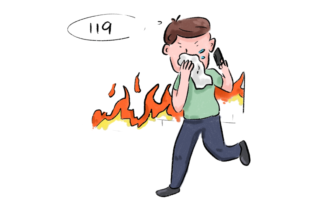 4.穿过浓烟逃生时,要尽量使身体贴近地面,并用湿毛巾捂住口、鼻。