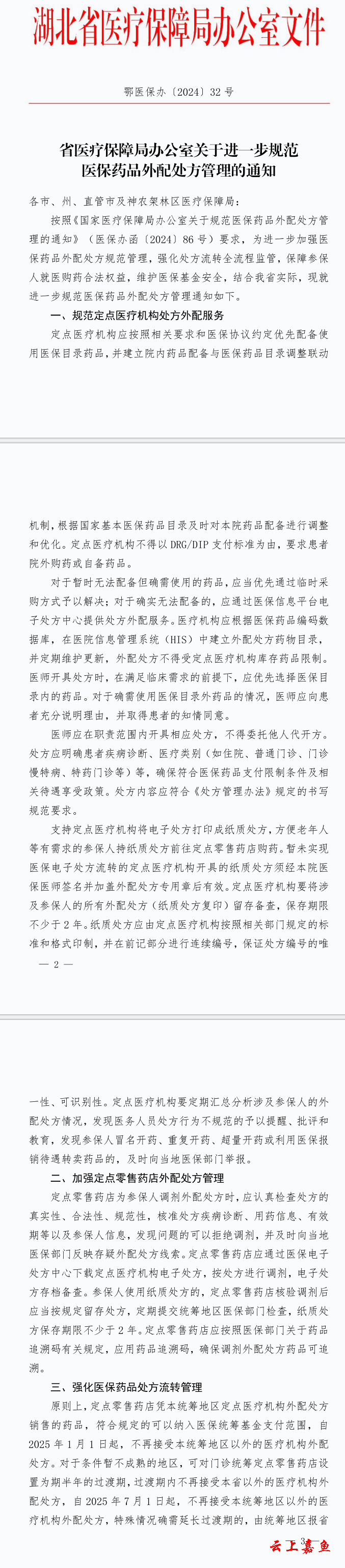 省医疗保障局办公室关于进一步规范医保药品外配处方管理的通知