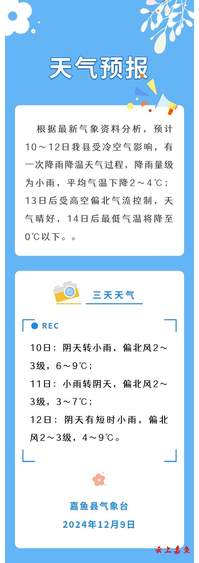 2024年12月9日嘉鱼天气预报