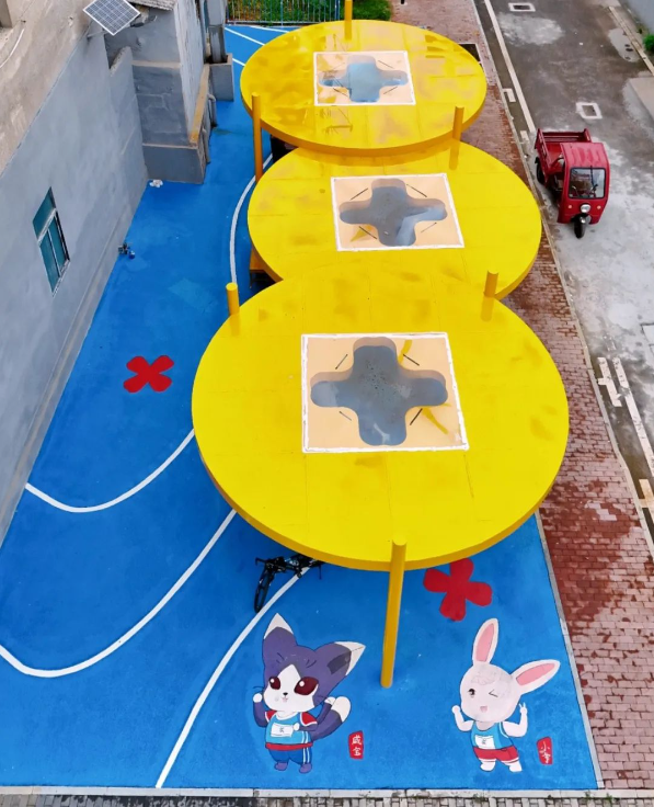 近日,走进咸安区温泉街道花坛社区汇泉小区一处广场,城市吉祥物“咸宝”和“小宁”,以及市花桂花跃然其上。在黄色桂花造型的遮阳亭内,小区居民正在下象棋。在小区内另一处广场,不仅设置有多种健身器材,还有摆满盆景的共享花园。
