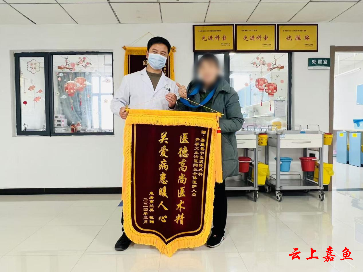 今年3月,56岁的高素珍(化名)骑电动自行车时不慎摔跤,被送至县中医医院急诊。经X光片检查,发现患者右锁骨骨折,不及时治疗可能会影响手臂神经。在进一步检查评估后,尹学文决定为患者进行锁骨骨折切开复位内固定术。经过手术治疗,患者伤口愈合情况良好,手臂和手部活动自如。为感谢尹学文的精心诊治,高素珍送来一面写着“医德高尚医术精 关爱病患暖人心”的锦旗。
