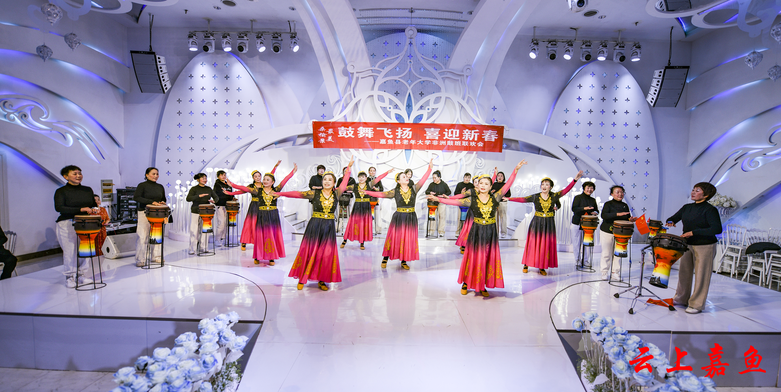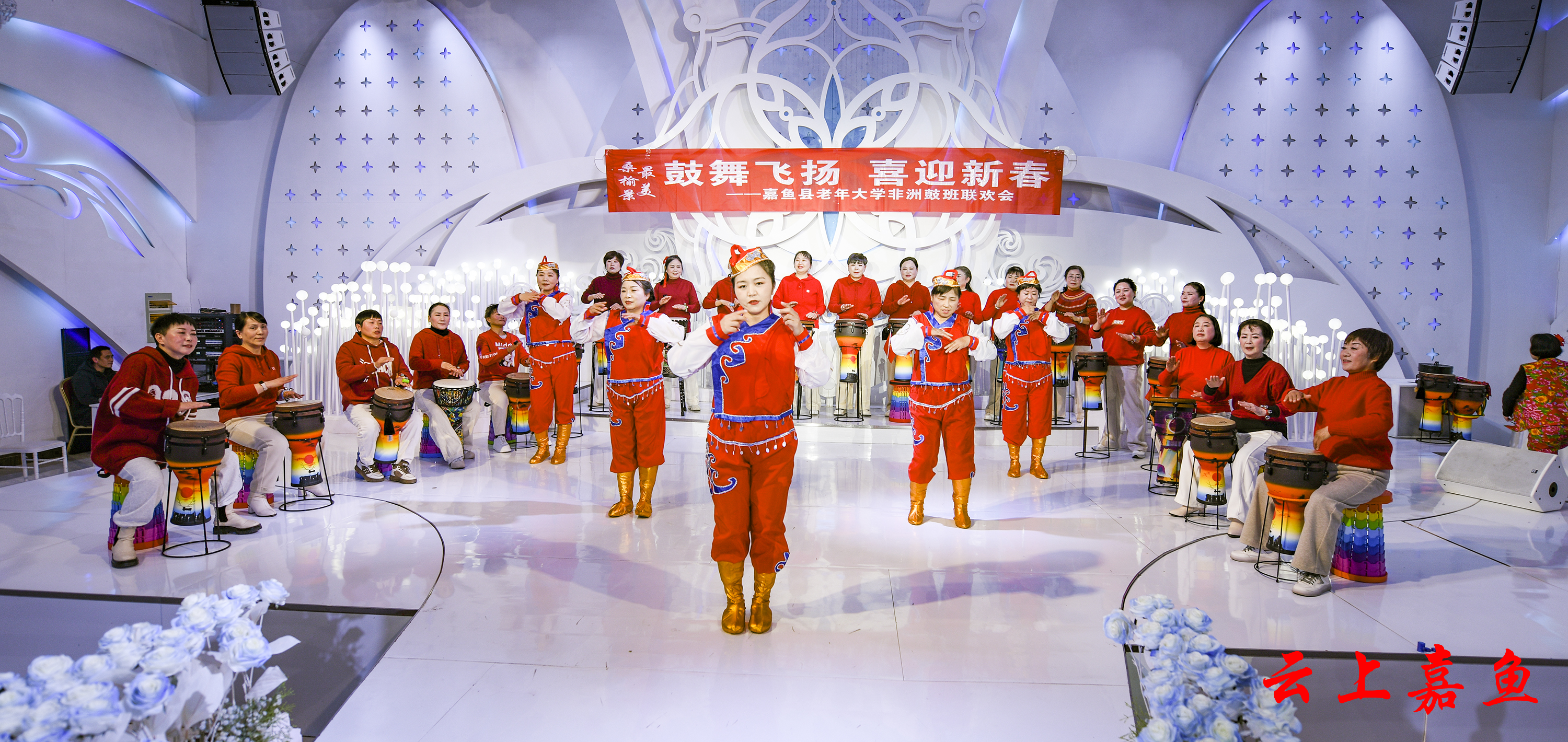 云上嘉鱼报道(全媒体记者雷平 通讯员汪红芳)鼓声阵阵辞旧岁,舞姿翩翩迎新春。12月25日,嘉鱼县老年大学非洲鼓三个班级共200多名师生欢聚一堂,欢欣鼓舞,辞旧迎新。