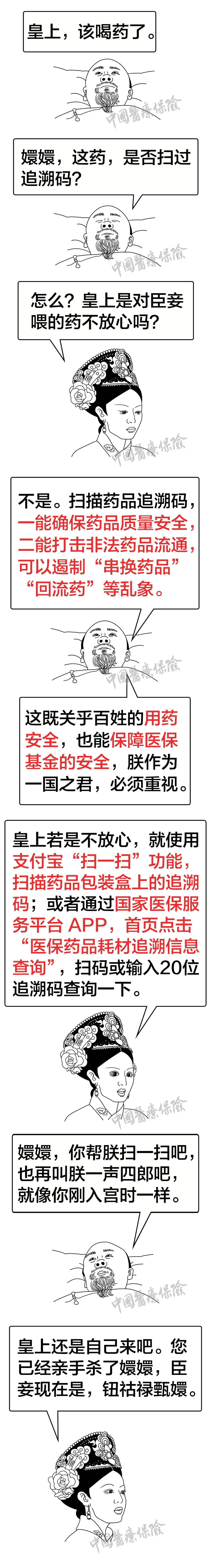 以上内容灵感来自《甄嬛传》,纯属虚构,仅供参考。 小保特别提醒: 药品追溯码的有效运行,离不开生产、流通和使用各环节的紧密配合。当您拿到药品时,不妨花几秒钟扫码查询,确保查询到的药品信息与实物一致。这看似简单的动作,不仅能保障您和家人的用药安全,更是对医保基金监管体系的有力支持。让我们共同守护人民的“看病钱”“救命钱”,携手筑牢用药安全防线。 打击欺诈骗保 湖北医保一直在行动! 如果您在生活中 遇到欺诈骗保的行为 请速速拨打以下电话 进行举报 ↓↓↓ 来源:漫画医保